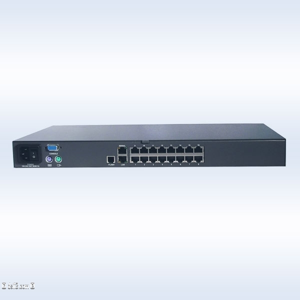 - Connecteurs d'entrée : VGA HDD15 + 2 PS/2 : connexion de la console clavier/écran/souris. RJ11 Série : permet le contrôle (commutation sur les ports) et la mise à jour du commutateur.